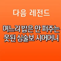 며느리 밥은 안 퍼주는 못된 심술보 시어머니 - 미즈넷 미즈토크 시댁 스트레스 썰 (0) | 2017.10.24 |